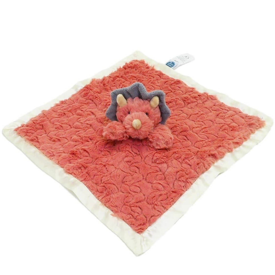 ナチュラルな色合いのニュートラルカラーで展開する「パティシリーズ」よりコーラル色の恐竜のぬいぐるみが付いたブランケットが登場しました。